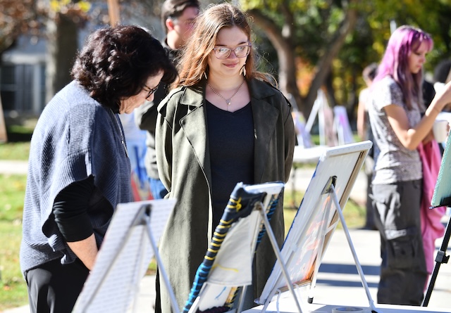 Inaugural LWU Art Walk showcases 28 pieces by 13 artists By Duane Bonifer Lindsey Wilson University student Atavya Fowler '26 brought a slice of the Caribbean to Columbia-Adair County while also "bringing the arts to the people." The art major organized the first LWU Art Walk, held on Thursday, November 6, 2025, and featured 28 original pieces by 13 Lindsey Wilson student artists. Set under an azure sky and golden autumn sun, the display included paintings and sculptures that were exhibited along the sidewalk that cuts through the university's Campus Quadrangle. Fowler said she was inspired to organize an art walk on campus because of a similar project that's held almost daily in her native Bahamas. "You get to examine the art, experience it and buy things," said Fowler, who is from Nassau. Article continues... click here to read the whole article, or to share, print, or bookmark it. 2025-11-07 10:33:10 | Comments | See topic Lindsey Wilson University
