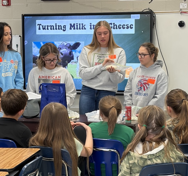 Adair Schools celebrate big for All In for Ag Education Week From Robin Hancock, FFA Advisor/Agriculture Teacher Adair County Middle School, Adair County High School The Kentucky Department of Education sponsors All In for Agriculture Education week twice a year, in March and September. As a result, schools all across the Commonwealth celebrated agriculture and learning about agriculture last week. Adair County Schools loved being a part of this great event by hosting representatives from the Kentucky Department of Education and Kentucky Department of Agriculture, including Deputy Agriculture Commissioner Warren Beeler, Kentucky State 4-H President Case Shirrell, and Clinton Corner, Kentucky State FFA Vice President of the Lake Cumberland Region. The theme for All In for Ag Education Week this spring was the dairy industry, in collaboration with The Dairy Alliance, which is a nonprofit organization funded by dairy farmers in the southeast United States to educate the public about dairy farming and delicious dairy foods, along with Farm Credit Mid-America. During the visit, Adair County FFA members Myla Curry, Maycee Hovious, Alyssa Greer, and Alexa Castrejon visited Jessica Simpson's 4th grade math classroom at Adair County Elementary School and Sarah Dean's 2nd grade classroom at Adair County Primary Center to teach a lesson about how cheese is made from milk (a liquid) into cheese (a solid), changing states of matter. Students in both classes were given the opportunity to try mozzarella cheese and learned about dairy farming. During the visit to our elementary schools, Pam Phipps and BreAnna Coffey's library technology students and Jennifer Mann's library students enjoyed read alouds of this spring's All In for Ag Education Week book, Millie's Farm Day, written by Ayla Tolentino and illustrated by Blakey Beth Callahan. Later in the day, teachers across Adair County and the state tuned in to a virtual field trip hosted by Compton Dairy Farm in Fairplay, Kentucky. Mr. Tony Compton was interviewed about his operation while students got to meet his family's dairy cows. Mr. Compton was joined by Kentucky Education Commissioner Dr. Robbie Fletcher, Kentucky Agriculture Commissioner Jonathan Shell, and author Ayla Tolentino on the "Ask the Aggies" panel. Students submitted questions for each "Aggie" to answer. After school, our visitors returned to Adair County Schools, where the Adair County FFA Chapter hosted an after school learning opportunity. Students from Camp Casey, Camp Safari, and Camp Arrow were bussed to the high school where they went through rotations to learn about soils and planting seeds in the FFA greenhouse with Brittany Smith, welding in the FFA Ag Shop with Gabby Barnes, and taking care of baby calves with Robin Hancock in the FFA barn. The Adair County FFA officers were also on hand to help with each station. The young students loved hands-on learning about agriculture, and the Adair County FFA really enjoyed teaching them! Click here to share, print, or bookmark this article. 2026-03-23 09:46:01 | Comments | See topic Education