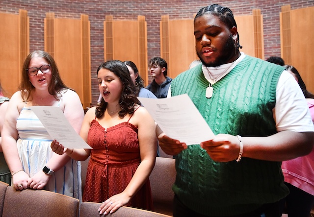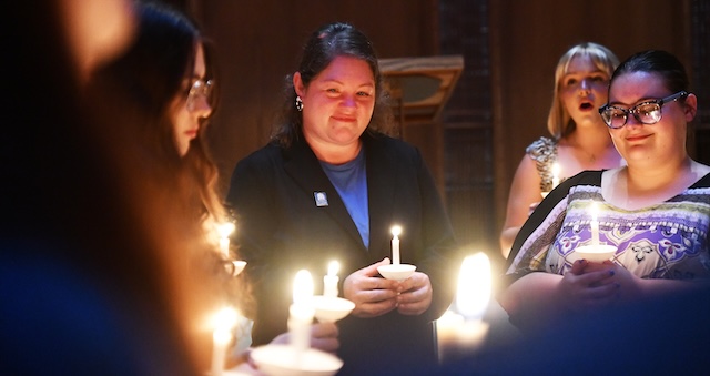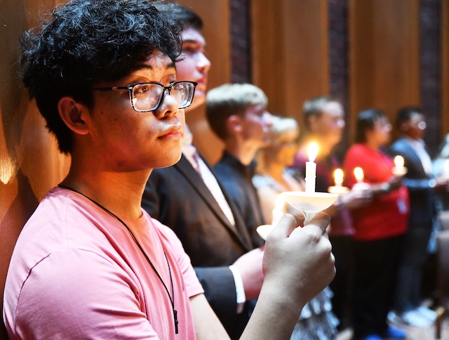 Lindsey Wilson University Singers begin a new Era of Excellence By Duane Bonifer A new eara in the storied history of the Lindsey Wilson Singers got underway on Tuesday evening, September 23, 2025. The Singers' annual Standards of Excellence Signing Ceremony was held in the historic John B. Begley Chapel, and it was the first time under the Lindsey Wilson University banner and the first time under Director of Choral Activities Jennifer Bersaglia. At the ceremony, which is more than two decades old, members pledge to uphold the cocurricular group's "Standards of Excellence," a 191-word document that spells out the ensemble's musical and social expectations. After signing the document, members gathered together in candlelight to welcome newcomers and express their community and solidarity through song. "When we use the word 'excellence,' we first must ask ourselves who established the very notion of excellence in the arts," Bersaglia told the Singers and guests, which included several alumni and family members. "For this we look to the first artist, the Creator himself. All beauty in the created world bears witness to the excellence of God." With a nod to scholasticism, Bersaglia also reminded the 33-member choral group that "Western civilization has been built on the triad of virtues coming forth from the Word -- the transcendentals of the good, the true and the beautiful." "We bear witness to the world around us when we pursue these virtues by the work of our own hands, or voices in our case," she said. The three pillars The group's officers addressed the three pillars that underpin the choral ensemble's work -- energy, intensity and passion -- which they said are vital to having a successful school year. Madeline Hardwick '27 of Columbia said that energy can be found in both everyday work and while performing on tour. "There is absolutely nothing better to me than when we are on tour and I get to look out into the crowd and see our audience feeding off our energy," she said. "Whether that's joy, laughter or tears, which there's a lot of." To find the group's maximum potential, Kaleb Humble '26 of Monticello, Kentucky, told fellow members that "you must have intensity." "And you must have intensity in small things every day in order to hone it," said Humble. "Give everything you can, while you can, because one day you'll wake up and you'll be getting ready to graduate -- or already have." And by embracing passion, the Lindsey Wilson Singers can be transformed from a musical group into a family. "We're not here because we have to be, but because something deep inside us wants to be," said Sadie Kemp '26 of Columbia. "That something is passion. Passion isn't just a feeling -- it's a force. It's what pushes us to grow, to challenge ourselves and to support each other. It's what turns a group of singers into a family." For new member Briana Frey '29 of Breeding, the Standards of Excellence Signing Ceremony was an important step for her in building that musical family. "It was wonderful," she said. "It gave us a sense of community that we're part of something larger and we get to represent something that means so much to us -- this institution." This story was posted on 2025-09-24 08:58:54