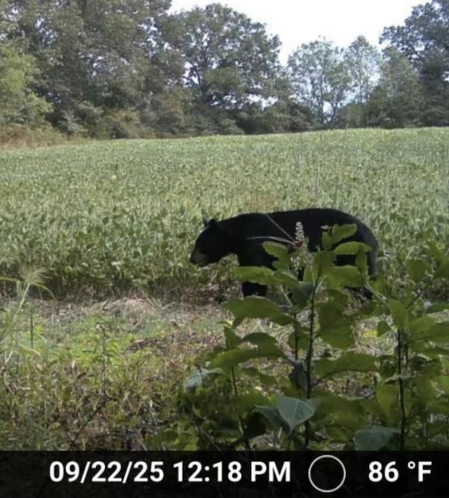 Black Bear sighted in Adair County By Donna Rieder A black bear has been spotted near Clifty Creek Farm in Adair County. I've got my electric fences turned on around my chickens and bees. I'm not worried about the horse, but I AM locking the goats in the barn at night. The bear pictured has been checking out this whole area. It's got everything he needs for survival; food, water, shelter, not a lot of human activity... I won't be surprised if he hangs around. And I'm okay with that, he needs to live somewhere, as long as he stays away from my beehives! It's common for young male black bears to be looking for new territory this time of year. Papa bear says "time to move on boys" bc the females won't breed if they have young'uns with them. - DR Ed Waggener used to campaign for black bears to come to Adair County in order to increase tourism. Click here to see the only one he discovered in his lifetime - not a live one and not in Adair County, but close enough. Ed even maintained The official Blue Ribbon Bear Board for a few years if you'd like to visit it in the Columbia Magazine archives. - LW This story was posted on 2025-09-26 11:53:38
