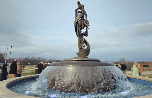 The Jane Todd Crawford sculpture in front of the Jane Todd Crawford Hospital in Greensburg, Kentucky, was unveiled on December 13, 2025. The 11-foot bronze statue was created by Lindsey Wilson University art professor Tim Smith. Comments | Permalink Installation of the Jane Todd Crawford sculpture