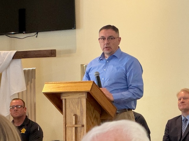2026-04-13 - Columbia, KY - Photo by Linda Waggener, ColumbiaMagazine.com. Rev. Tracy Moon, retired from the Greensburg Police Department, gave the benediction at the second annual Spirit Of Columbia awards held last week on the campus of Lindsey Wilson University.