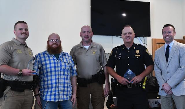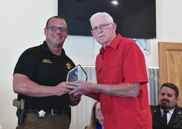 2026-04-13 - Columbia, KY - Photo by Duane Bonifer. Adair County Emergency Management Director Chad Wheet presented a posthumous Lifetime Service Award to Terry Akin with his family accepting in his honor. Terry Akin was the former director of the Adair County Ambulance Service where he served in that capacity for 37 years. He was active in numerous organizations within our community.