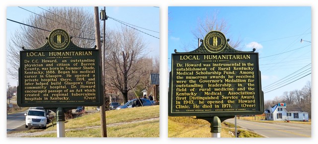 2025-11-15 - 2300 block of Summer Shade Road, Summer Shade, KY - Photo by Ed Waggener. Note: The photo above was first published on CM in January 2015. This historical marker is at the birthplace of Dr. C.C. Howard, in Summer Shade, KY, who's early work laid the foundation for the medical center Glasgow, KY, has become today. The front of the marker, left, has KY 90/Summer Shade Road west, toward Glasgow, in the background. The right photo is looking east, by Anne's Restaurant, toward Burkesville and Dale Hollow Lake.