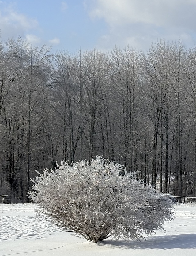 Fred writes, "The recent storm might have caused hardship to many folks but it also provided lots of natural beauty. The sleet and freezing rain turned our Burning Bush into a Sparkling Bush and our little Pink Dogwood into a little Silver Dogwood. Beauty can be seen even during tough times if you look for it."