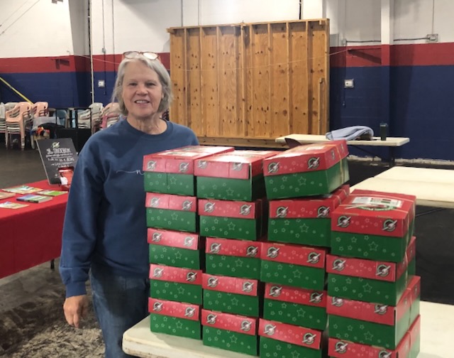 2024-11-23 - Adair Co., KY - Photo from Mark Fudge. Sandra Watts delivered Operation Christmas Child shoeboxes that were packed by the Columbia United Methodist Church.