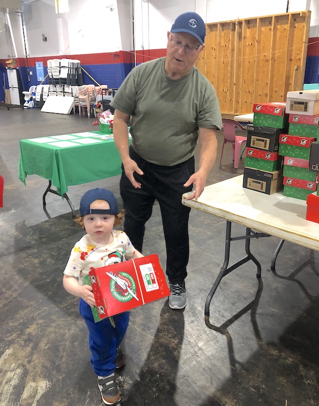 2024-11-24 - Columbia, KY - Photo from Mark Fudge. Two-year-old Rhodes Fudge stopped long enough for a photo shoot Saturday morning. He was busy helping his grandfather Mark Fudge deliver shoebox gifts at the Wheet Fellowship Hall. Rhodes is the son of Matt and Preslee Fudge. Read More... | Comments? | Click here to share, print, or bookmark this photo.