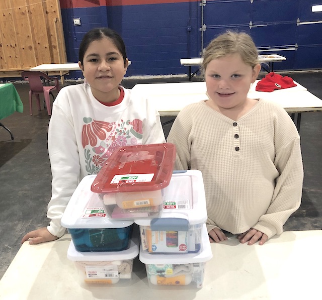 2024-11-24 - Columbia, KY - Photo from Mark Fudge. Bianca Alfaro and Ava Alfaro dropped off Operation Christmas Child shoebox gifts on Saturday morning. They said that their favorite items to add to the boxes were hygiene items, school supplies and of course the toys.