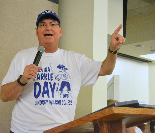 Lindsey Wilson College Gives Day of Service To Community Lindsey Wilson College staff member Alaina Phelps got to see Malvina Farkle Day from a different perspective. For the last four years, Phelps had been involved with LWC's annual day of service as a student. But as the college's new Bonner Program coordinator, she saw the event from another perspective when it was held on Wednesday. "It's an excitement, eagerness, and a joy to serve like I've never felt before," said Phelps. "As a new member of the college staff, I had more to manage because I was leading a project, but the feeling I got was still just the same as when I was a student." Malvina Farkle Day is an annual day of community service at LWC. Classes are canceled and offices are closed so students, faculty and staff can participate in community-service projects. The day is named in memory of a mythical and legendary Lindsey Wilson alumna and staff member who was known for her community spirit and practical jokes. "I think Malvina Farkle Day is important to the community because so many of our community members support Lindsey Wilson and a lot of our community is in need of assistance," said Phelps. "We take pride in our home away from home and Malvina Farkle Day is a way to show the pride we have for this town and our school." This year's Malvina Farkle Day community-service projects included more than four dozen sites in Columbia-Adair County. "Malvina Farkle Day is a day when we take a timeout and remind ourselves that it is not just about us," LWC President William T. Luckey Jr. told students, faculty and staff in Roberta D. Cranmer Dining & Conference Center shortly before canceling classes for the day. "We are like a small city on top of a hill and we have an opportunity to impact this community in an incredible way." And Luckey said that this day of service is an important part of Lindsey Wilson's identity. "This day represents an important part of what we do at this college -- community service and trying to go out and make a difference in the world," said Luckey. Nursing freshman Kayla Young from Campbellsville, Ky., volunteered at the Adair County Primary Center washing windows with the LWC volleyball team. "I had heard about Malvina Farkle Day from my friends in Bonner and on the volleyball team," Young said. "Besides having to wake up really early, I had a great time and I can't wait until next year." Phelps, who served as a Bonner Scholar during her time as a student, says one of the long-term benefits of Malvina Farkle Day is that it helps new students integrate into college life and learn more about Columbia and Adair County. • "Not only do we complete service projects on our campus, but for all the students who get up and serve, no matter how dreadful it is to wake up that early, they bond," said Phelps. "It's an eye-opening, bonding experience to serve in the community that is now your home. It's like seeing a new side of where you live. Malvina Farkle Day creates a community while serving others, and it's beautiful." This story was posted on 2018-09-12 19:30:45