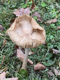 This mushroom smiled at me as I took its picture. The next morning I awoke to a whole garden of them, the top of each is about the size of a coffee mug.