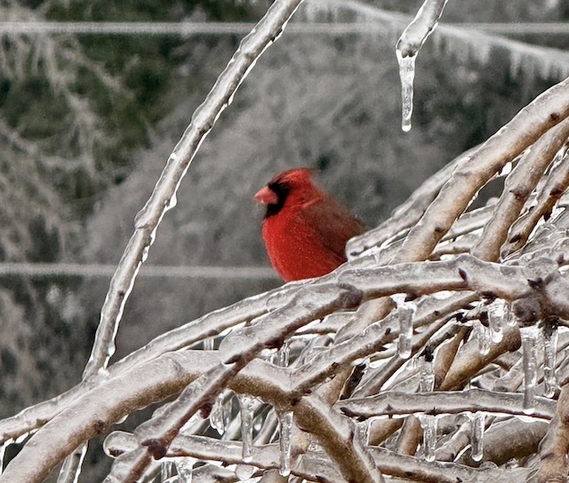 Birds of Kentucky: Cardinal in icy branches