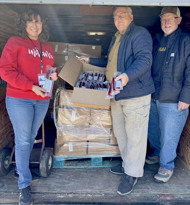 Hunters For The Hungry - Pam Bivens, Family Resource Center Director, was happy to receive the donation of venison meat sticks from Richard Phelps, center, and Terry Partin. Adair County Family Resource and Youth Services Center (FRYSC) received the donation of venison meat sticks that will support student snacks and weekend food bags. Comments | Permalink Older Photos