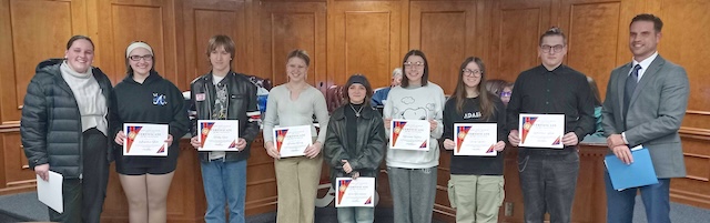 ACHS senior Brianna Hillock was honored for her outstanding success in the track disciplines. She is pictured with Supt. Jason Faulkner. The board recognized her for an exceptional cross-country season.