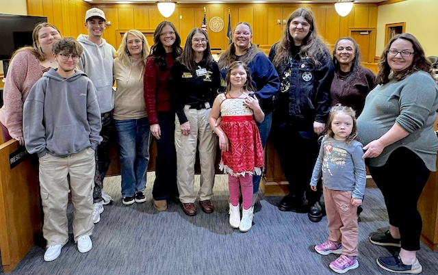 Tina Thomas, fourth from left, shared this picture of grandchildren who made it to the special event honoring Raydean Burton at her 15-year retirement from the Adair County Sheriff's Office. From left are: Madison Clark, Trinity Burton, Gavin Bloyd, Tina Thomas, Autumn Dietzel, Raydean Burton, Cheryl Goodin, Novalee Goodin, Colton Clark, Tisha Cook, Lainey Estes and Haley Estes. Comments | Permalink Basketball: Lady Indians win in Double OT