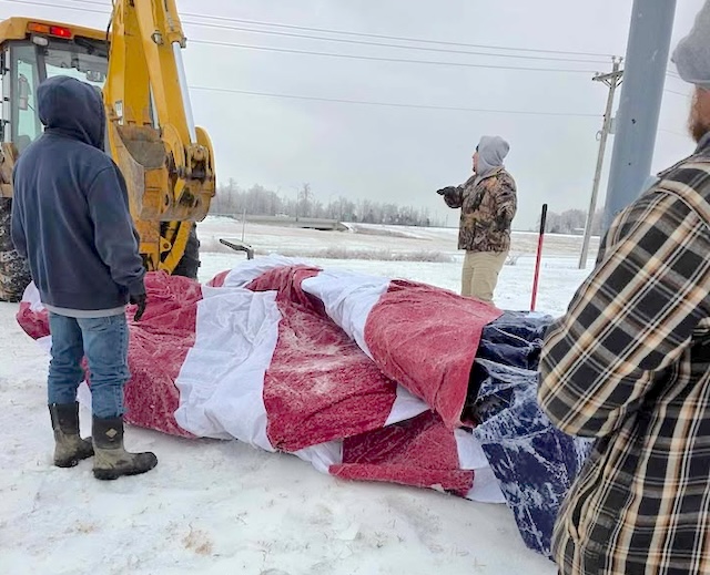 The Columbia Police Department assisted TJ Health Columbia staff by helping clear snow and ice from the hospital's helipad. This effort was to ensure the helipad would be available for helicopter patient transport if needed during the winter storm. Pictured are Columbia Police Sergeant Trevor Foster; TJ Health Columbia Chief of Operations Brandon Dickey, Health Security Officer Robbie Kimbler, and Health Maintenance staff member Greg Bennett. Comments | Permalink Parkway flag rescued - a thank you