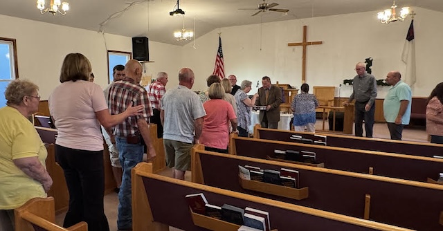 2026-04-04 - Adair County, KY - Photo by Linda Waggener, ColumbiaMagazine.com. The evening sun poured through the windows of Emory Chapel United Methodist Church during Good Friday services. Communion was taken, prayers were offered up then a meal was shared with everyone.