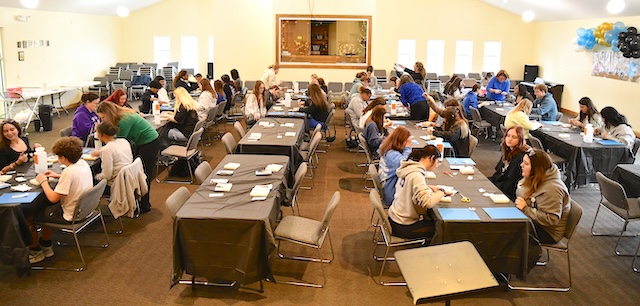 2025-11-28 - Columbia, KY - Photo courtesy Lindsey Wilson University. Area high school students work on a suture exercise on Friday, November 21, 2025, in the Lindsey Wilson University Norma and Glen Hodge Center for Discipleship. The students were among more than 150 area high school students who attended Lindsey Wilson's nursing preview day.
