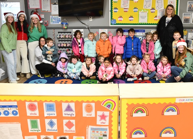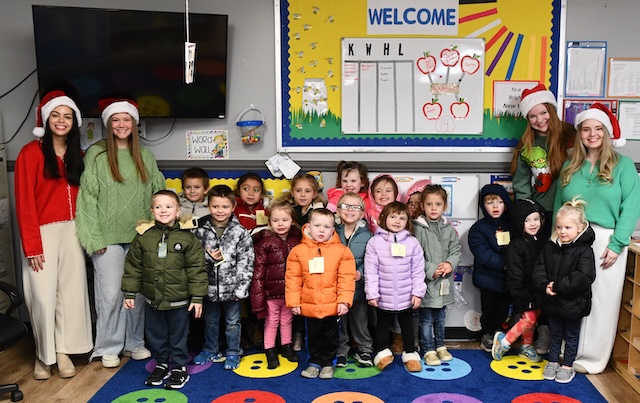 2025-12-10 - Columbia, KY - Photo courtesy Lindsey Wilson University. Members of the Lindsey Wilson University Bonner Scholars program presented winter coats to students in the Adair County Head Start on Wednesday, December 10, 2025. The Lindsey Wilson Bonner Scholar Program's "Coats for Kids" donated 48 winter coats -- along with winter hats and gloves, toys and games -- to Head Start. In the last 14 years, "Coats for Kids" has donated more than 700 coats to Adair County Head Start students.