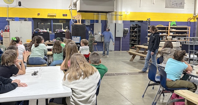 2026-03-23 - Columbia, KY - Photo from Robin Hancock. FFA members Alexa Castrejon, Maycee Hovious, Myla Curry, and Alyssa Greer teach ACES fourth graders in Jessica Simpson's math classroom about making cheese during All In for Ag Education Week.jpg