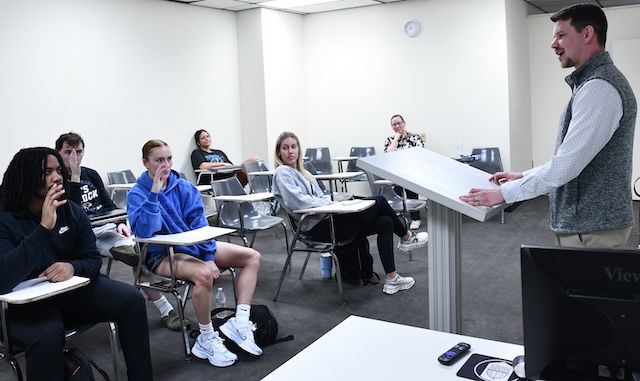 Patrick Adkins speaks to LWU accounting students