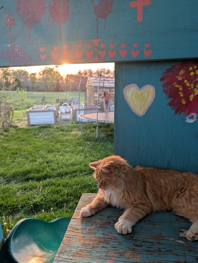 2026-04-05 - Fairplay, KY - Photo by Veronica Arnold. Veronica writes of this Friday photo, "It's Good Friday and we are all outside enjoying the beautiful sunset and being together. As Holy Week builds to a climax this weekend, I'm thankful for being able to stop and see the beauty and softness. Especially from the view the kids have! Yes that means climbing up into the treehouse! It's good for you!"