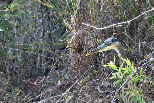 The Heron blended into all the drying weeds by Downey Lake just waiting for lunch to swim near. This is the picture of patience.