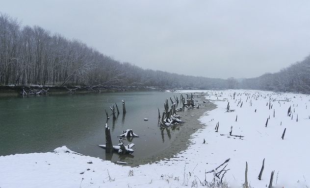 "This was taken standing on the boat ramp looking up the river," writes Tony Streeval. "It looks much different in the Winter because see the stick ups, which are usually below the waters surface in summer." But in winter, they are the dominant visible feature of the shoreline. Seen in the ColumbiaMagazine group on Flickr.
