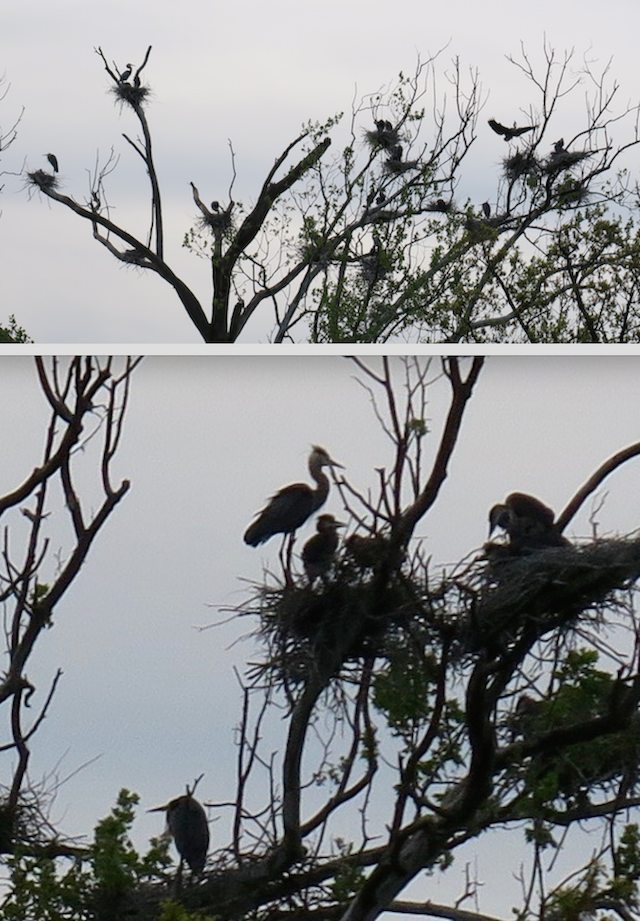 A sunset visit at the Great Blue Heron Rookery on Mother's Day - observing the mamas and babies in the tree top.
