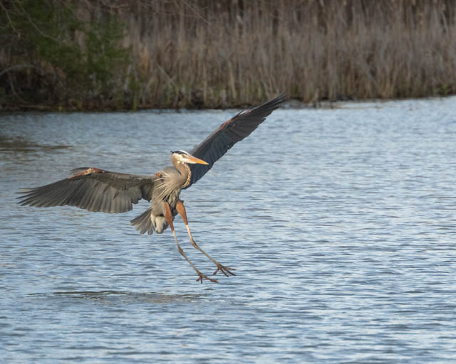 A great blue swoops in for a landing.