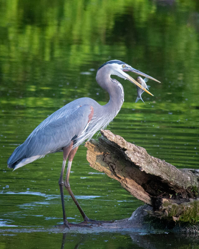 A great blue casually tosses a fresh catch to position it for swallowing.